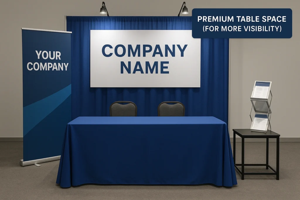 - Limited Display Space: Optional small pull-up banner or tabletop signage (if permitted by event guidelines).
